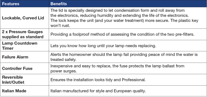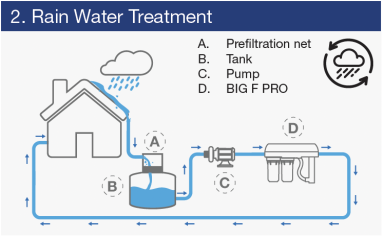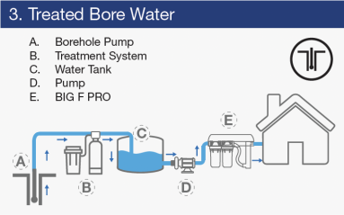 The Big F Pro consists of a two-stage cartridge filter solution and a UV unit to deliver a complete household water filtration solution. Choose from 3 different size options depending on the flow rate required. Simple maintenance kits are also sold to make regular maintenance of this solution as easy as possible. The Big F Pro is perfect for filtering mains water, rainwater and treated bore water.